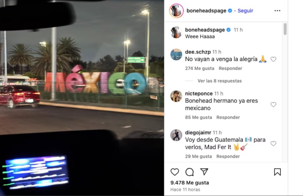 La publicación desató una ola de mensajes de bienvenida y celebraciones. Comentarios como «Bonehead hermano ya eres mexicano» se viralizaron, mostrando el gran cariño que los seguidores mexicanos le tienen a la banda. Los fans incluso le ofrecieron tacos, pozole y otras delicias locales.