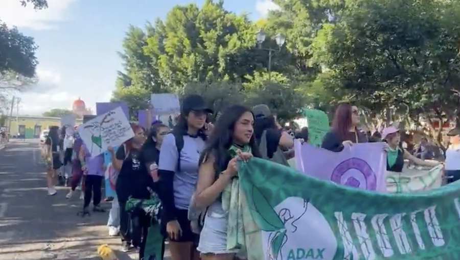 Durante la marcha, que fue escoltada por personal de Protección Civil y de la Defensoría de los Derechos Humanos, las mujeres realizaron consignas como: “¡Mi cuerpo es mío y sólo mío, y sólo mía la decisión!”