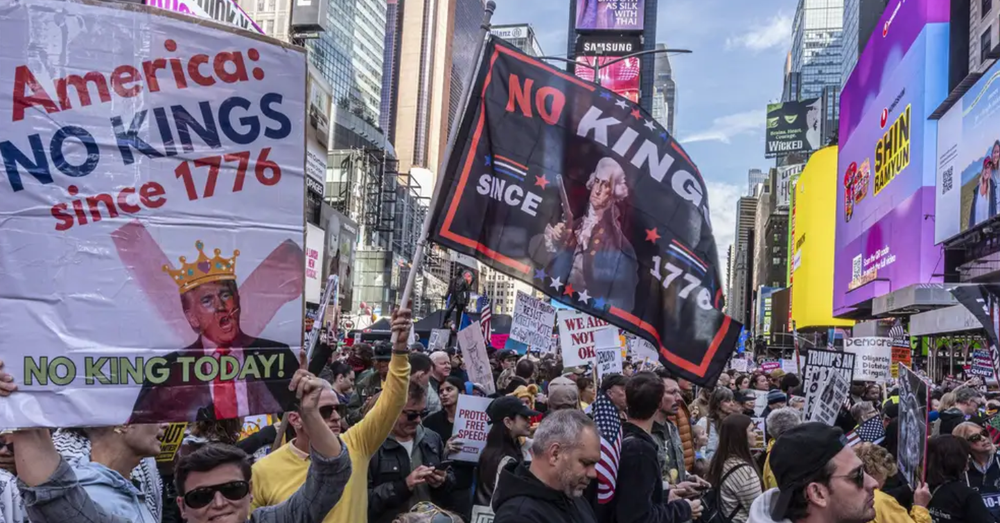 Una ola de resistencia cívica se extendió por Estados Unidos este domingo, con cientos de ciudades uniéndose a la jornada de protesta bajo el poderoso eslogan «No a los reyes» (No Kings).