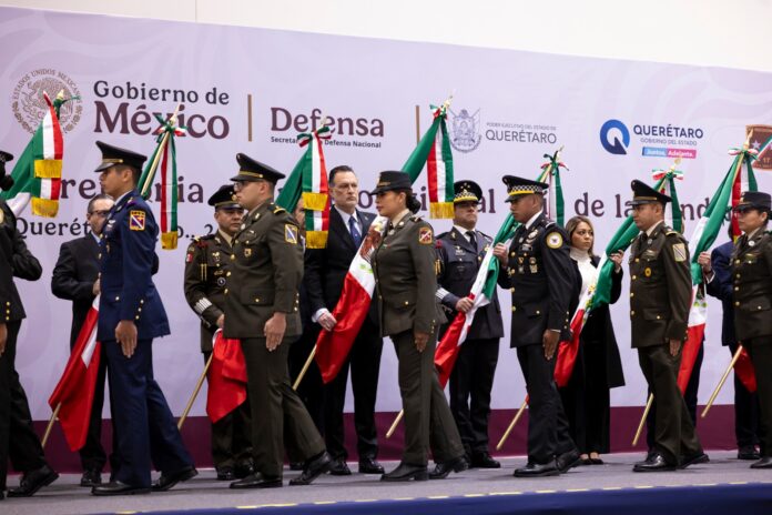 Durante el evento, se realizó un enlace virtual con la ceremonia nacional encabezada por la presidenta Claudia Sheinbaum Pardo, permitiendo que Querétaro se sumara al abanderamiento simultáneo de escoltas en todo el país.